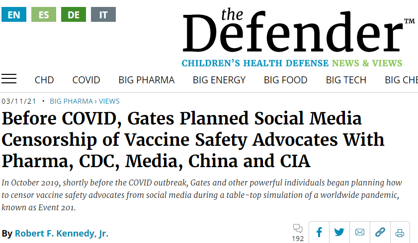 - 2018-2019: WEF, Pharma, China, Johns Hopkins, CIA, Media & Gates simulate fake pandemics (Event 201) which insist on a merging of “public-private cooperation.”